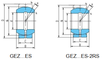 Design characteristics Inch series radial spherical plain bearing with extended inner ring and single-fractured outer ring, with cylindrical extensions at each side of inner ring,there is an axial slit on the outer ring,both  the inner and outer rings are made of carbon chromium steel,hardened and phosphated,sliding surface treated with MoS₂.Bearings of the 2RS design are fitted  with seals at both sides.